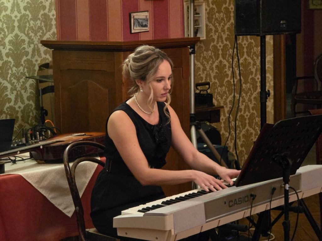 Как верно заметили ведущие, поэзия — это предтеча песни. И следующим этапом вечера стала инструментальная музыка. Дарья Клещева виртуозно исполнила на пианино знаменитый вальс Евгения Доги из фильма «Мой ласковый и нежный зверь» и сорвала искренние аплодисменты.