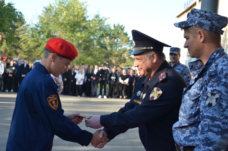 В селе Черниговка Приморского края сотрудники Росгвардии, представители образования, педагоги и родители пришли поздравить кадетов профильного класса с вручением первых специальных удостоверений — удостоверений кадета.