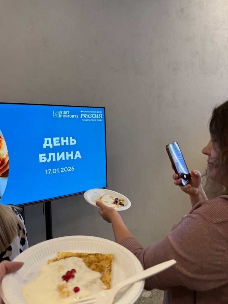 Владивосток, 17 января 2026 года. Пока до официальной Масленицы ещё далеко, в Национальном центре «Россия» решили не ждать весны и устроили настоящий гастрономический «разогрев». День блина собрал горожан, привлечённых ароматами свежей выпечки и обещанием дегустации от лучших шеф-поваров города. Мероприятие сочетает в себе локальный колорит (краб!), гастрономические тренды и семейную атмосферу. Площадка на несколько часов превратилась в открытую кухню. Никаких закрытых дверей — только индукционные плиты, блеск половников и виртуозное мастерство профи.