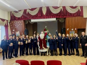 Сотрудники подразделения прибыли в школу в образах любимых детских персонажей — Деда Мороза и Снегурочки. Несмотря на атмосферу праздника и волшебства во время встречи гости подняли серьезную тему и подвели итоги прошедшего года. Наставники отметили успехи кадетов в учёбе и военной подготовке, похвалили за высокие оценки и участие во многих городских патриотических мероприятиях.