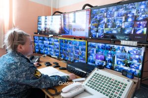 Затем мы побывали на одном из постов видеоконтроля. За последние годы произошли изменения — раньше наблюдение за соблюдением порядка содержания под стражей осуществлялось путём патрулирования, теперь же — при помощи видеонаблюдения. На посту располагаются 7 мониторов, которые охватывают камеры двух этажей.