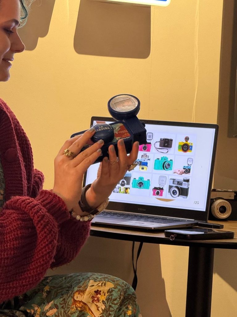 Участницы мастер-класса, пробуя камеру в деле, резюмируют: «Медленно, но весело». В этом и суть: в ломографии нет «неудачных» кадров. Если пленка порвалась, пошла дырками или засветилась — это не брак, это искусство.