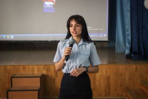 Инспектор ПДН Хабаровского ЛУ МВД России на транспорте, лейтенант полиции Сабина Мирзоева начала встречу с напоминания о негативных последствиях потребления наркотических средств и существующей ответственности за участие в их незаконном обороте.